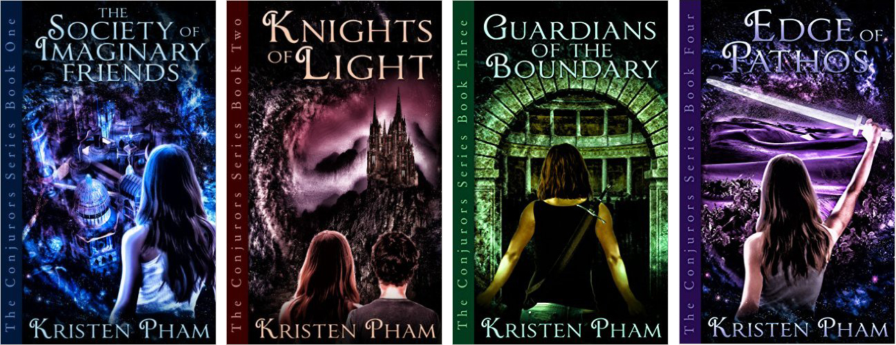 "The Conjurors" consist of 4 books: The Society of Imaginary Friends, Knights of Light, Guardians of the Boundary, and Edge of Pathos. Each book will not be a standalone book, and therefore needs to be read as a series, preferably one after the other. I was able to read all 4 books together and I must say, I've enjoyed it. It was refreshing because it's not about wizards, vampires, wolves, vikings, hobbits, or dystopian society. Don't get me wrong, I also like these topics or books with the above mentioned characters or types, but "The Conjurors" gave us a separate world than the recent hits. There will always be love stories and triangles, and like Harry Potter, it gave us a separate society along with the "normal" human world. Unlike Harry Potter, it's a separate universe, literally, but you can still travel to Earth.
