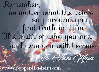 I can tell you right now, this book, The Thorn Keeper will be in my year end top lists. I know, a tad bit unfair to all those books I've yet to read, but there's still room for them for sure. I'm just letting you know (ahead of time) the magnitude of how I enjoyed and love this book, and the characters, especially Catherine Dougall (Kat).After my very profound proclamation above, let me tell you a little of how I feel about Ms. Catherine Dougall. It all started in Pepper Basham's The Thorn Bearer, book 1 of the Penned in Time series. Catherine was a selfish debutante who cared only about social status, marrying well and give her sister, Ashleigh a hard time. O, I dislike her as I dislike Caroline Bingley in Pride & Prejudice. That is until "Rescue me?...Forgive me if You can. What little I have is Yours, if...if You want it." I mean she slowly improved as the story progressed, but it was those words that held its final release in any animosity I have towards Catherine and even come to like her. I begin The Thorn Keeper refreshed with the new life she now has in Christ.