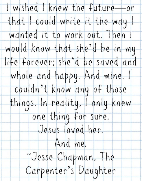 The Carpenter's Daughter is heart-rendingly touching, capturing your heart as you ache for Sarah, and feel her emotions of self-awareness to self-doubt, even during her poor choices. Written in 3-person perspectives, it brings to light the internal struggles of each character. Sarah's questions of self-worth, Jesse's desire to protect Sarah, trusting God to do just that, and Dale's demons from the past, all comes to life before our eyes. And from that the truth of God's love so abundantly shown. His choice to love us despite who we are and our mistakes, gifting us with more than we can even acknowledge. A tragic tale it is, but without a doubt one that brings you on a journey to much more than finding your self-worth, but finding that God's there all along.NOTE: I received a complimentary copy of this book through Singing Librarian Book Tours for an honest review. All opinions expressed are my own. For my review policy, please see my Disclosure page.