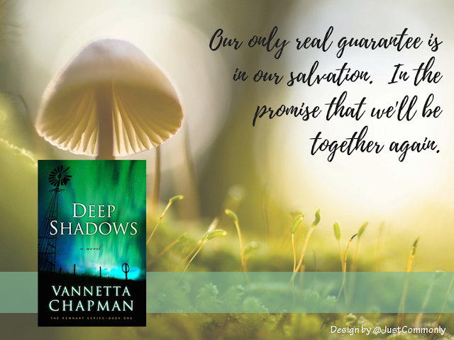 Now, onto Deep Shadows. What did I expect? I wasn't too sure, especially since I've only read Vannetta's Amish stories, but I guess I was intrigued by what "Dystopia" would be like in a Christian sense. I immediately thought of the famous Left Behind series by Tim LaHaye and Jerry Jenkins. Yet, that really wasn't dystopia, but more focused on the end in an apocalyptic sense. Well, wait no further, because I can tell you, dystopia written in Deep Shadows by Vannetta is not about the end, it's about overcoming individually and collectively, and trusting God.