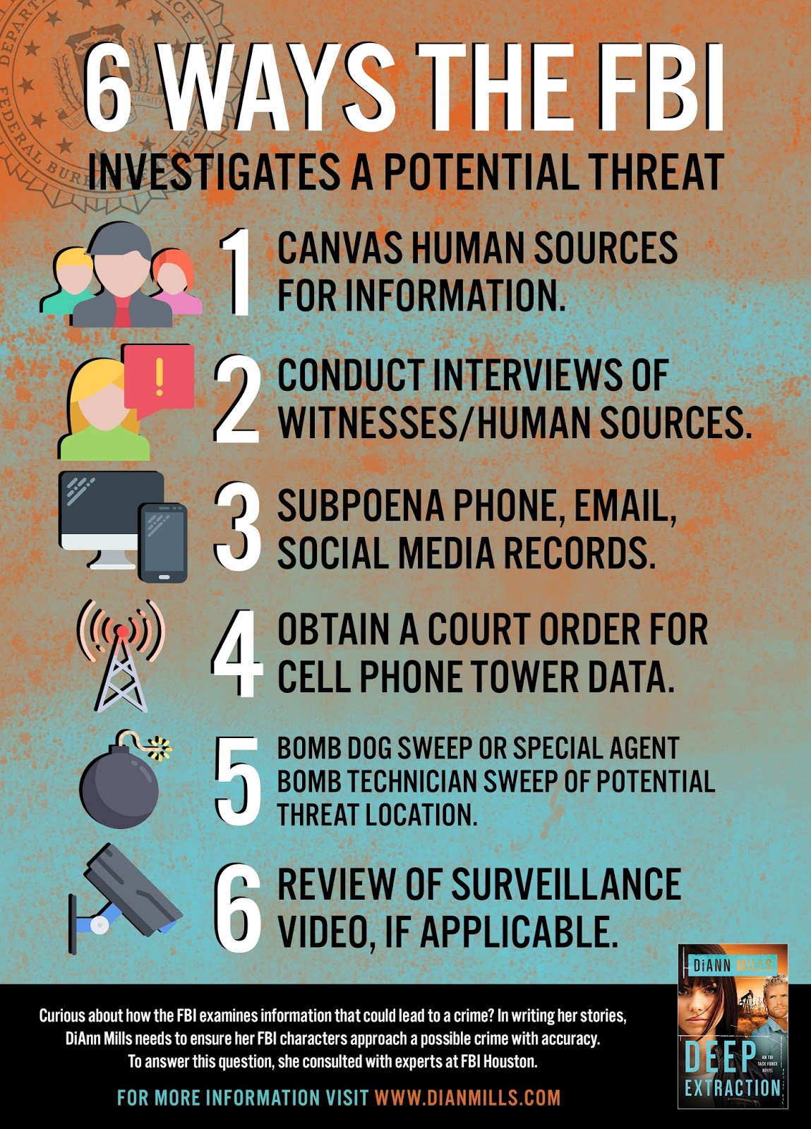 Guest Post: 6 Ways the FBI Investigates a Potential Threat by DiAnn Mills, author of Deep Extraction