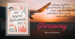 Lindsay is currently giving away an amazing prize package over on her own site. Enter over there to win a copy of The Heart Between Us, a $25 Amazon gift card, and several fun travel-themed items. The giveaway is open to U.S. residents and ends Sunday, 3/18, at midnight Pacific time.